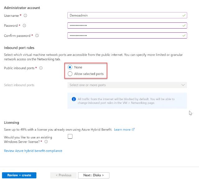 I will create a new VNet for this VM since it is just a demo. When I usually deploy these demo environments, I have automation to create the VNets and Subnets before I create my virtual machine.