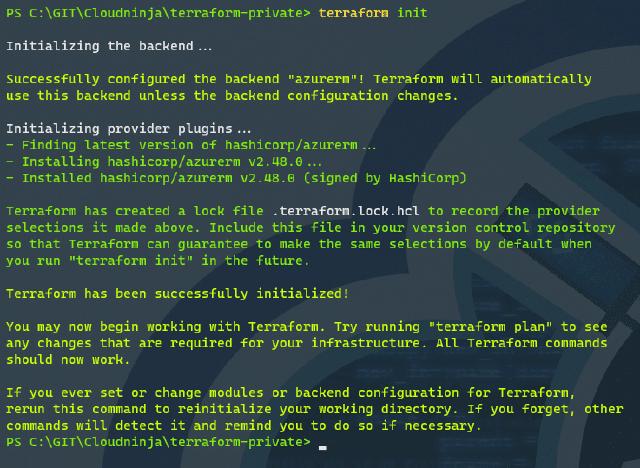 Now I can run the command “terraform init” to initialize terraform in this folder.