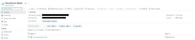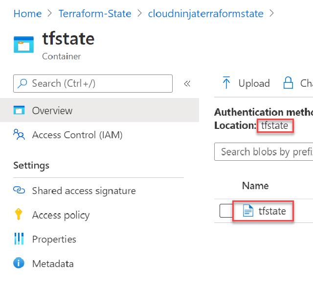 To verify that terraform is using the states’ storage account, I browse to the container and verify a new file is generated here.