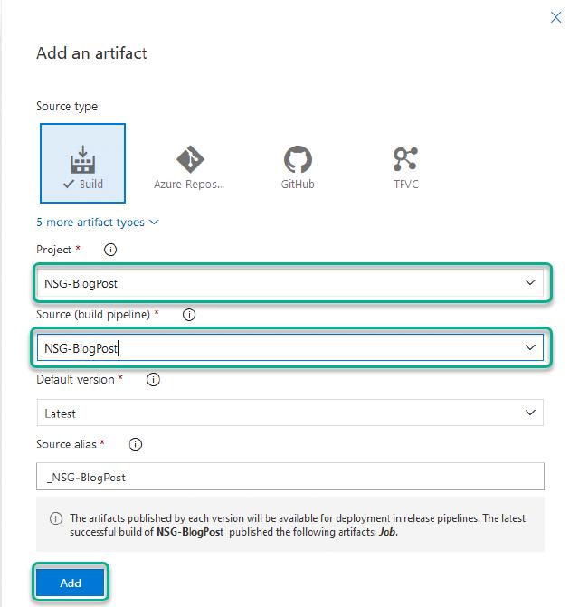 I can choose my project and build pipeline and click on “Add”.
