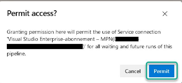 And I need to hit “Permit” one more time to grant permission for the pipeline to use the service connection.