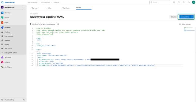 Now I have the pipeline up and running, and any changes I make to my NSG are done in the template. When I check my code, it will automatically check if the template is valid and then update my Azure deployment afterward.