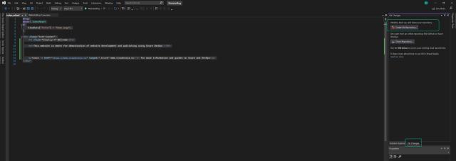 I am now ready to push the code from VS into Azure DevOps. I can do this from VS by clicking on “Git Changes” and then “Create Git Repository.”