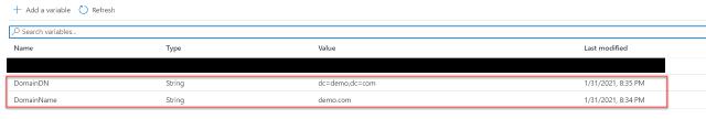 $DomainName = Get-AutomationVariable -Name "DomainName"