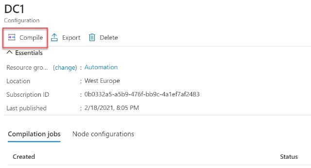 DC1 now appears in the list of configurations as not compiled. I can see this since “0” is the count of “Compiled configuration count”.