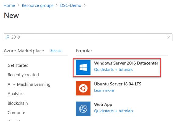 I click on “Windows Server 2016 Datacenter”.