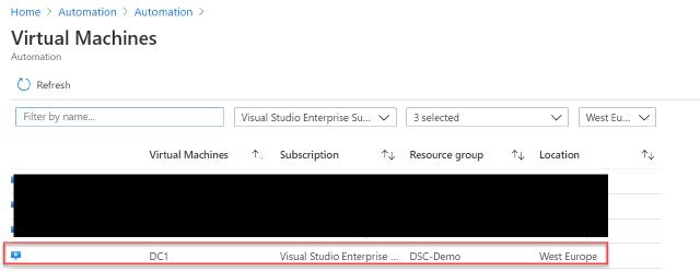 The final part I need to do now is to apply my configuration to the virtual machine. I do this by going to my automation account and click on “State configuration (DSC)”