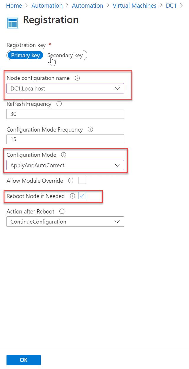 I choose the configuration that I created for the domain controller, and I ensure that “ApplyAndAutoCorrect” and “Reboot if needed” are selected.