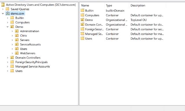 And to verify, I can log into the domain controller and view the domain structure.
