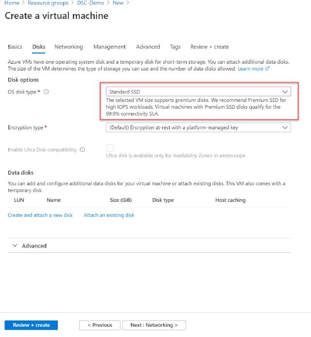 I will change my disk to a standard SSD to keep the cost a bit down.