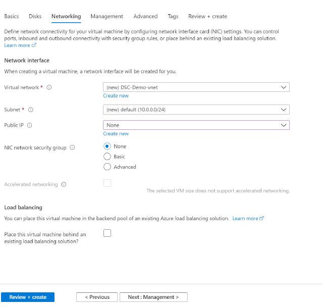 I will create a new VNet for this VM since it is just a demo. When I usually deploy these demo environments, I have automation to create the VNets and Subnets before I create my virtual machine.