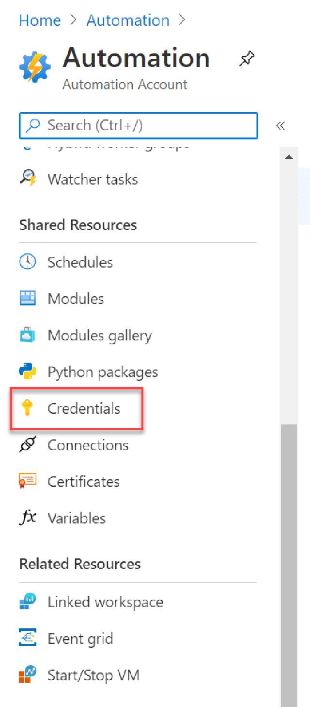 I navigate to my automation account and click on “Credentials”.