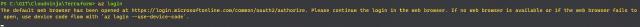 I open my PowerShell terminal and log into Azure using the “Az login” command.