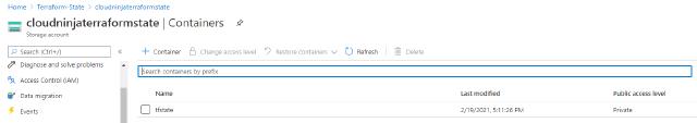 To verify that terraform is using the states’ storage account, I browse to the container and verify a new file is generated here.