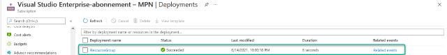 The portal shows my new resource group just fine, and if I check the deployment log on the Azure subscription, I can also see that the deployment ran successfully.