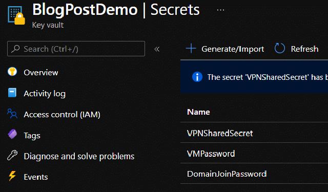 secrets: 'VMPassword, DomainJoinPassword, VPNSharedSecret'