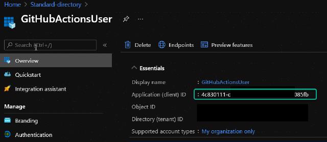 Next, I need to allow my service principal access to the key vault. Otherwise, it won’t be able to retrieve the secrets and use them in the pipeline. I provide this access by using Azure CLI and the command below. You can find the client id under “Azure Active Directory” and “App registrations,” find the service principal you are using in GitHub actions, and in the overview, the client id is listed. I have pasted an example on the app registration below.
