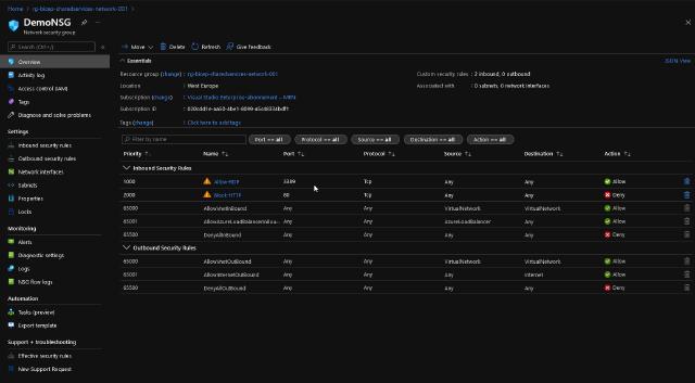 If I check my Azure subscription, I can now see my NSG with the rules I have in my template.