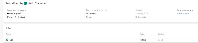 Now I have the pipeline up and running, and any changes I make to my NSG are done in the template. When I check my code, it will automatically check if the template is valid and then update my Azure deployment afterward.