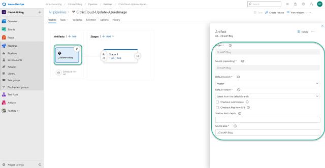 I use Azure DevOps to source control my code and run the workflows to update the Citrix images. I have created a basic setup for this blog post where I use my repository directly in my release pipeline, so I do not have any unit testing involved. I also use the graphical release pipeline to make the process clearer in this blog post.