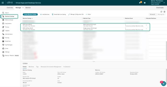 The next step is to create your machine catalogs, now I won’t go into details about that here, but if you need assistance setting-up Citrix Cloud, you can read my blog series on this subject here . For now, you can see that I have two machine catalogs in my environment. “MTH-OnPrem-Win10” is my on-premises, and “MTH-Azure-Win10” is in Azure.