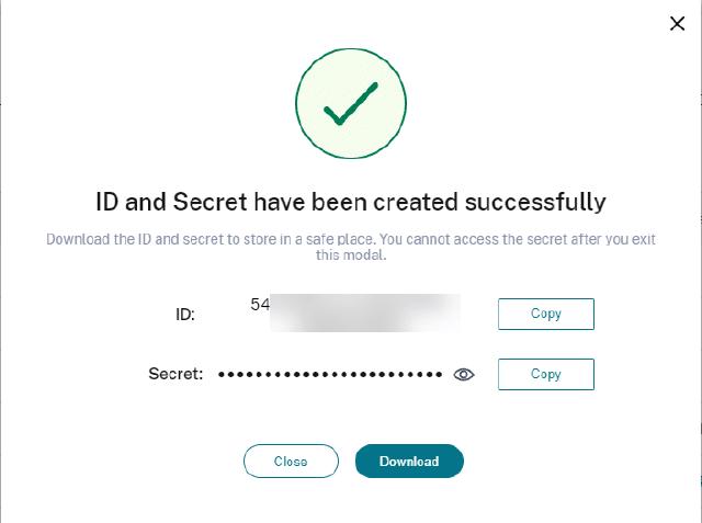 Note down the “ID” and “Secret,” after you close this view, you can’t get to this information again.